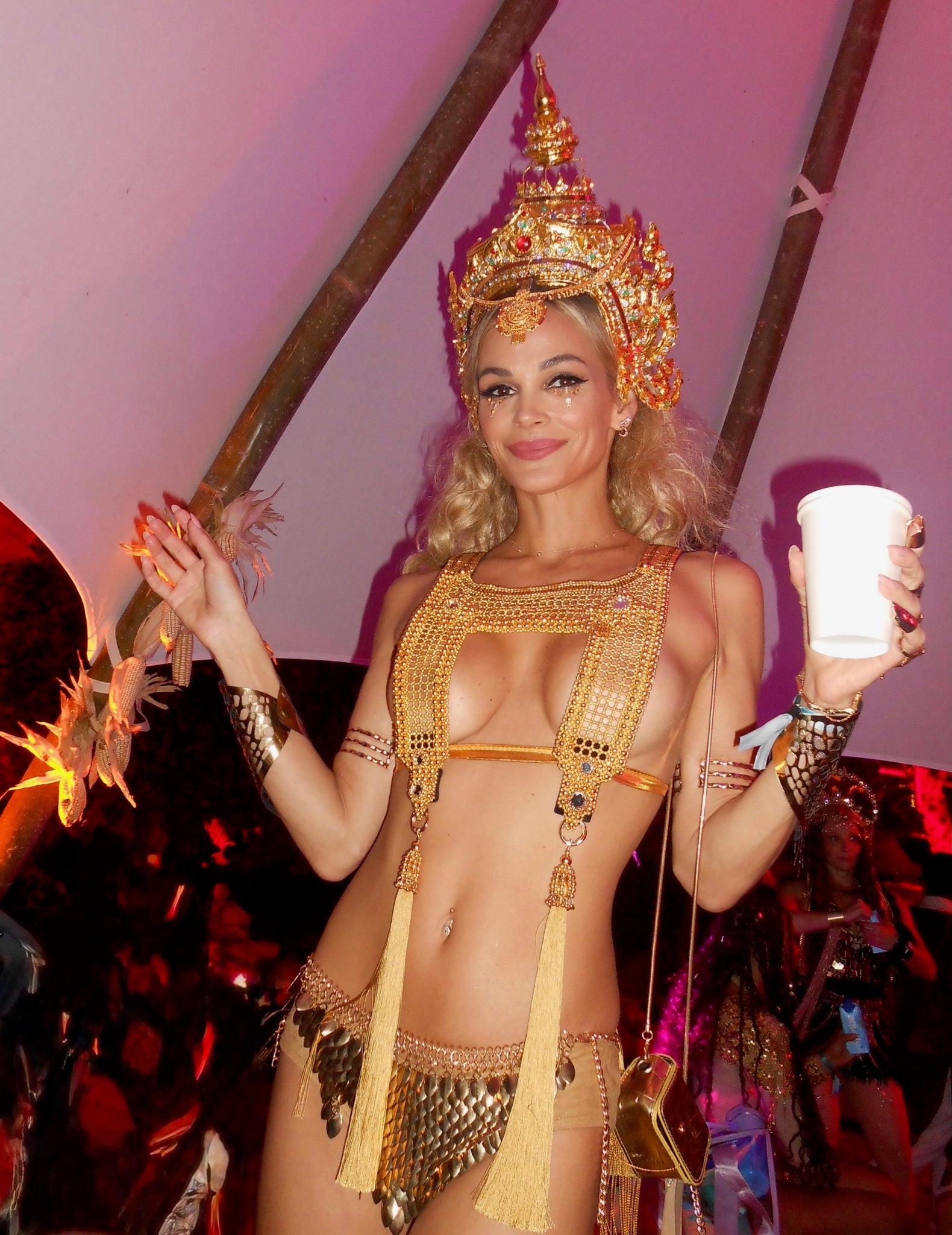 Own the dance floor, the party, the festival. In this sculptural mesh top, exquisitely handmade in 22k gold coated beads, you will look and feel out of this world! Our customers report feeling like a warrior, a goddess, and simply beautiful. Join them!