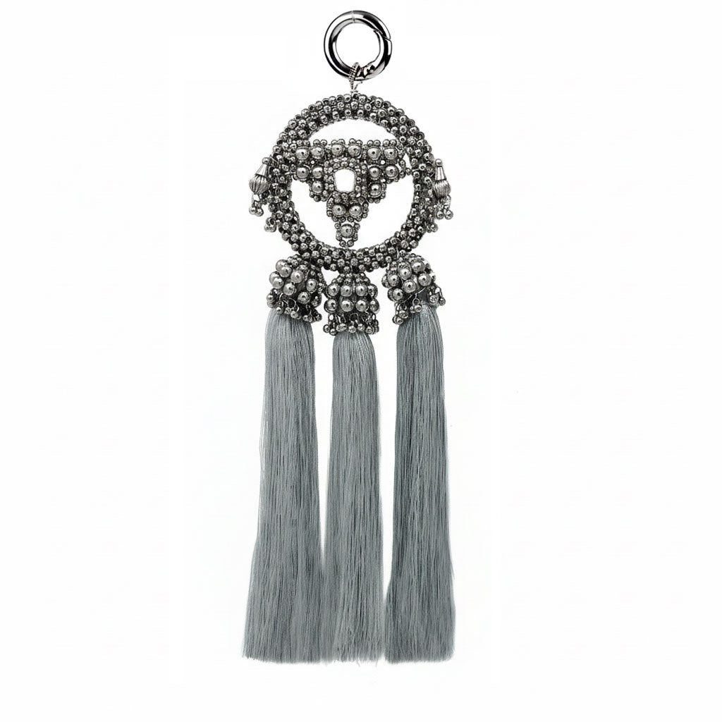 CONTENT: * Constructed entirely by hand with high quality metal beads that coated in polymer to preserve shine and ensure the item is hypoallergenic. * Accented with colored glass beads and mirror inserts. Each mirror insert is crowned with colored crystals. * Tassels are made of polyester thread.